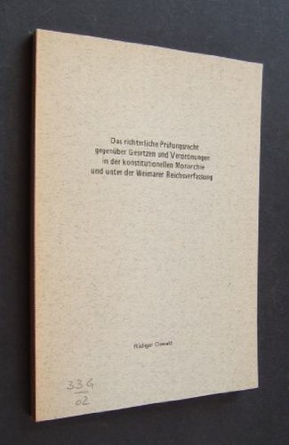 the book Das richterliche Prüfungsrecht gegenüber Gesetzen und Verordnungen in der konstitutionellen Monarchie und unter der Weimarer Reichsverfassung. Dissertation vorgelegt der Rechts- und Wirtschaftswissenschaftlichen Fakultät der Johannes-Gutenberg-Universität in Mainz zur Erlangung des Grades eines Doktors der Rechtswissenschaft [von Rüdiger Oswald]; PDF Download you can get for free on this website site